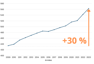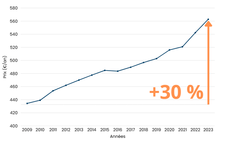 Evolution du montant des factures d'eau des foyers français (2009-2023)
