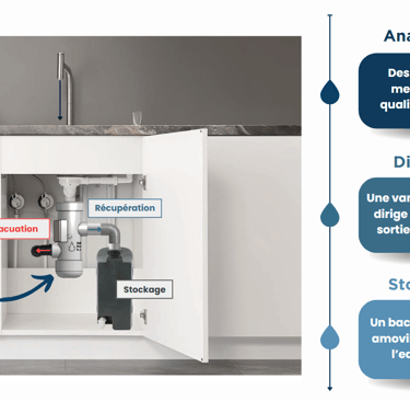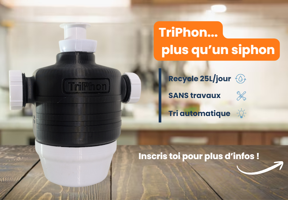 Cette solution est idéale et vous permet de multiplier par 3 vos économies en réutilisant l'eau récupérée par le TriPhon pour tirer les chasses d'eaux.